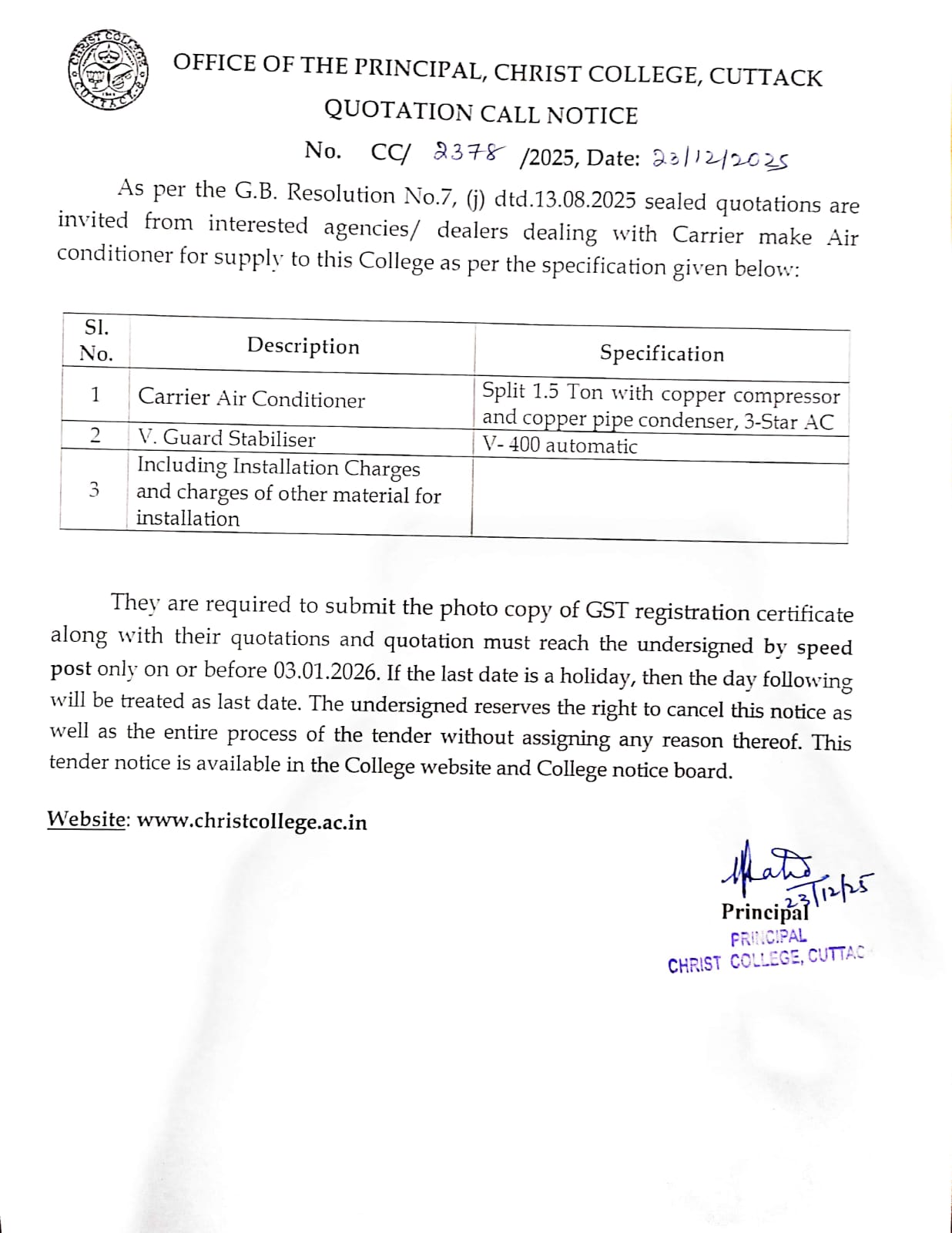 • Reach out to the Principal or administration office; contact information is listed on the college website.